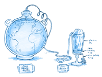 les réserves d'eau douce dont dispose la planète demeurent immuables, tandis que la demande s'accroît constamment. Seuls les 44 800 km3 d'eau des précipitations continentales peuvent être captés sans risque d'épuiser les réserves et constitue donc l'eau véritablement disponible et renouvelable(4). Puisque la population mondiale augmente actuellement au rythme de un million de personnes tous les quatre jours, la quantité d'eau disponible par personne décroît rapidement. Cette croissance démographique est principalement attribuable aux pays en développement, où, par ailleurs, le manque d'eau se fait le plus criant. La production grandissante de déchets humains, agricoles et industriels résultant de la croissance démographique aggrave la pollution de l'eau, parfois de manière irréversible, et contribue à réduire la quantité d'eau douce disponible. Déjà, il semble que plus de la moitié des grands fleuves du monde sont soit pollués soit en cours de tarissement(5). Puisqu'on estime que 2,4 milliards de personnes ne disposent d'aucun service d'assainissement, il ne faut pas s'étonner que plus de 90 % des eaux usées des pays en développement soient rejetées sans aucun traitement dans les sols, les lacs et les cours d'eau(6). La pénurie d'eau douce à laquelle nous serons confrontés à l'échelle mondiale résulte également de sa surconsommation, exponentielle dans les pays occidentaux, depuis l'industrialisation. En effet, tandis que la population mondiale triplait, au cours des soixante-cinq dernières années, la consommation d'eau a bondi, se voyant multipliée par six. Si 20 % de la population mondiale gaspillent l'eau potable, 1,2 milliard de personnes n'y ont toujours pas accès.